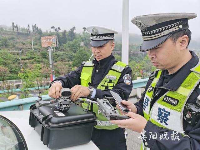 " 如果我們到對向車道去驅趕車輛,還得掉調頭,要花費十多分鐘。" 當天執勤的交警王志杰、蘇義峰介紹,兩人在現場商量后,決定利用隨車攜帶的警用無人機進行取證和喊話驅離。
