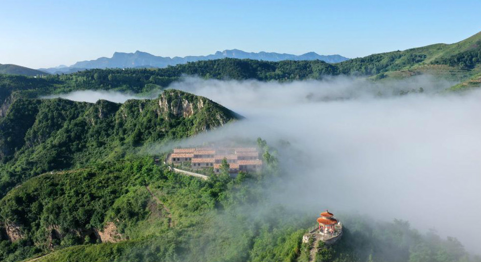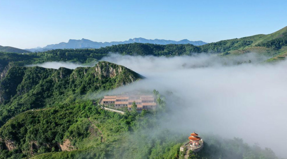 7月3日拍攝的河北省邢臺市天河山景區云海景觀(無人機照片)。